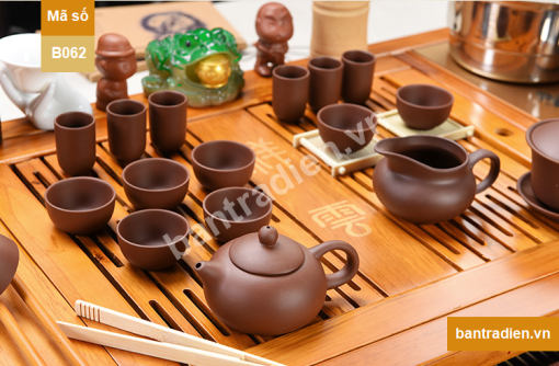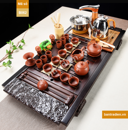 Bộ bàn trà điện thông minh khay rời B062 được làm 100% từ gỗ tự nhiên cao cấp đã qua xử lý, chịu được nhiệt độ cao và nước, mặt bàn được thiết kế nhiều đường xọc để đổ thẳng nước thải xuống và ko bị bám cặn bên trên mặt – kèm theo bộ bàn là bộ ấm chén và bộ phụ kiện trà đạo và sẽ là sản phẩm tuyệt vời mà bạn không nên bỏ qua..