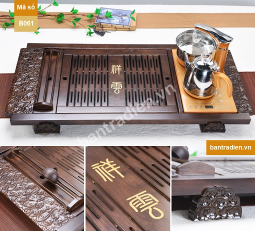 Bộ bàn trà điện thông minh B066 mang phong cách thiết kế và nhiều họa tiết truyền thống. B062 được làm hoàn toàn bằng gỗ tự nhiên 100% kèm nhiều tiện ích: