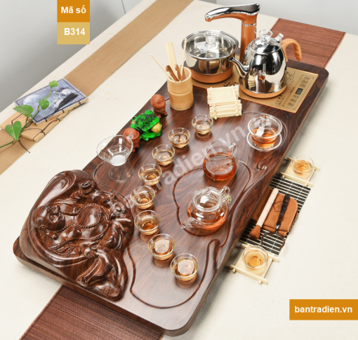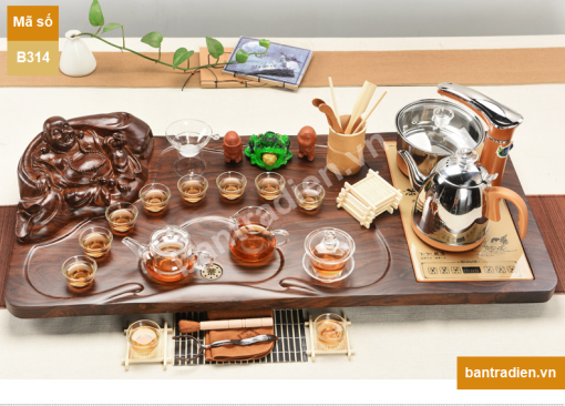 Bộ bàn trà điện thông minh B314 được làm từ gỗ tự nhiên NGUYÊN MIẾNG cao cấp đã qua xử lý chịu được nhiệt độ cao và nước, kèm theo bộ bàn là bộ ấm chén và bộ phụ kiện trà đạo. Đây sẽ là sản phẩm tuyệt vời mà bạn không nên bỏ qua.