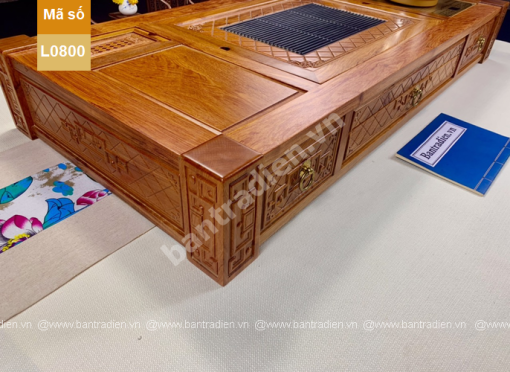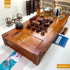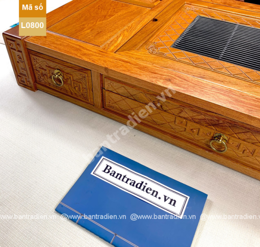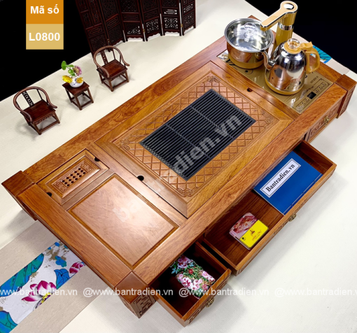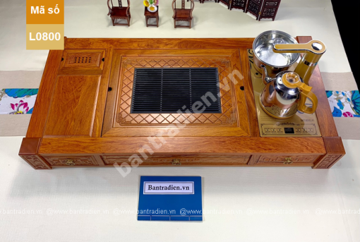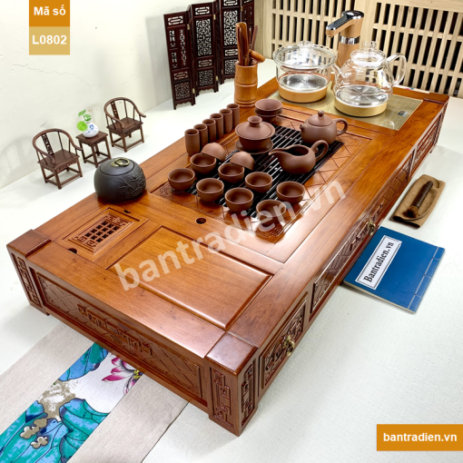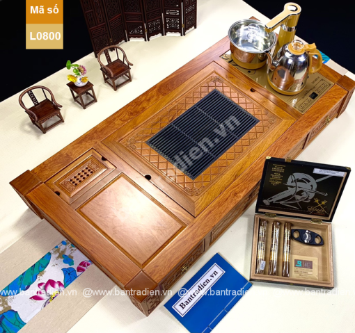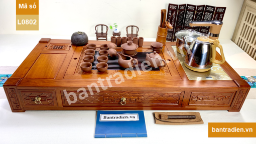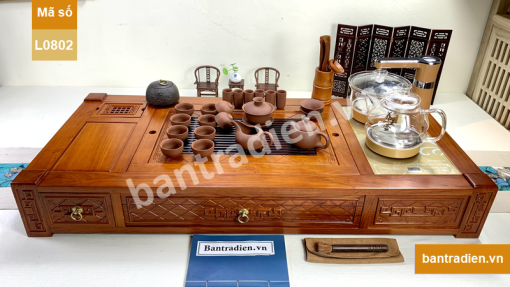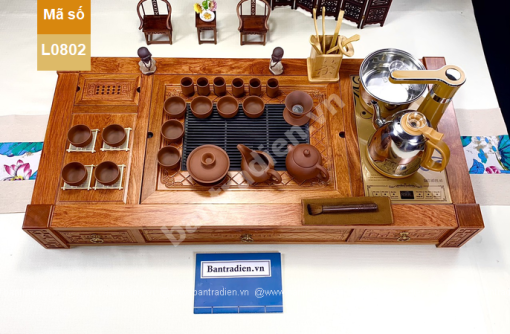 Bộ bàn trà điện cao cấp L0802, làm từ gỗ hương có chất gỗ già, được chế tác và tỷ mỉ, bề mặt được hoàn thiện cẩn thận và sơn phủ cao cấp.
