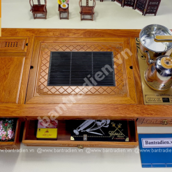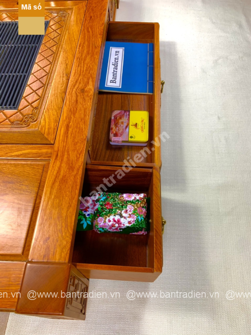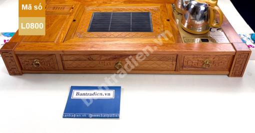 Bộ bàn trà điện cao cấp gỗ hương L0802 có thiết kế thích hợp 2 ngăn kéo bên dưới mặt bàn dùng để các vật dụng thiết yếu như: trà, thuốc lá, cigar, bật lửa, hay các dụng cụ trà đạo…