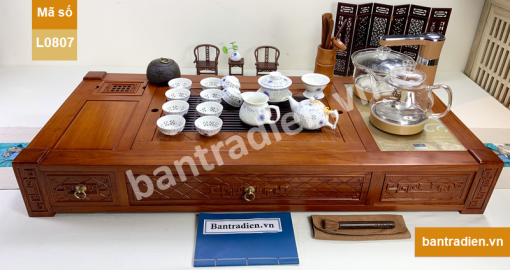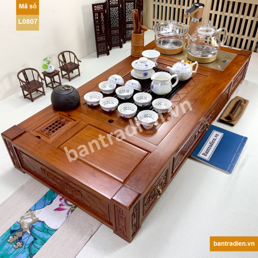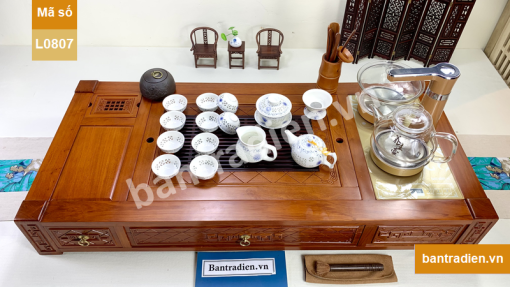 Bộ bàn trà điện cao cấp L0807, làm từ gỗ hương có chất gỗ già, được chế tác và tỷ mỉ, bề mặt được hoàn thiện cẩn thận và sơn phủ cao cấp.