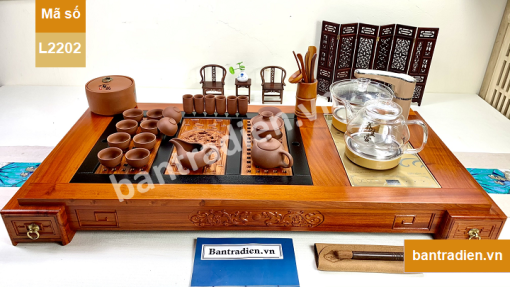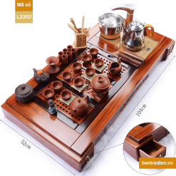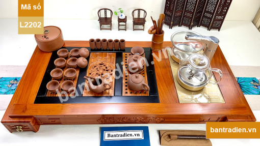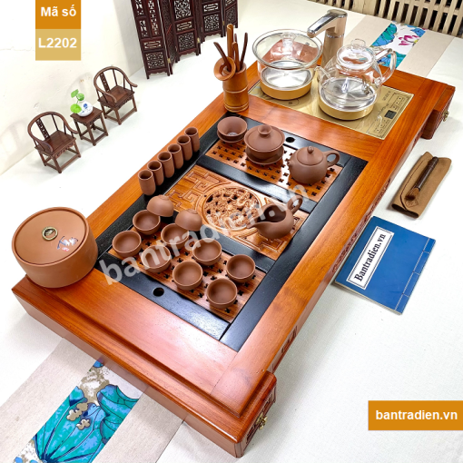 Bộ bàn trà điện cao cấp L2202, làm từ gỗ hương có chất gỗ già, được chế tác và tỷ mỉ, bề mặt được hoàn thiện cẩn thận và sơn phủ cao cấp.