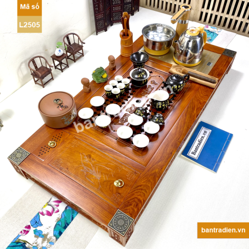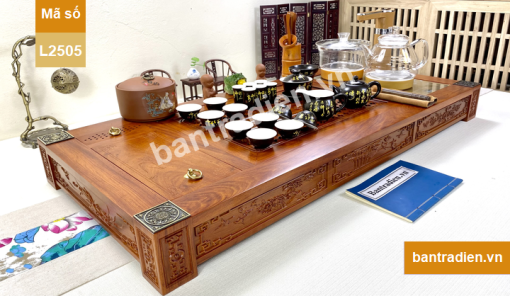 Bộ bàn trà điện cao cấp L2505, chất liệu gỗ hương, được chế tác và tỷ mỉ, bề mặt được hoàn thiện cẩn thận và sơn phủ cao cấp.