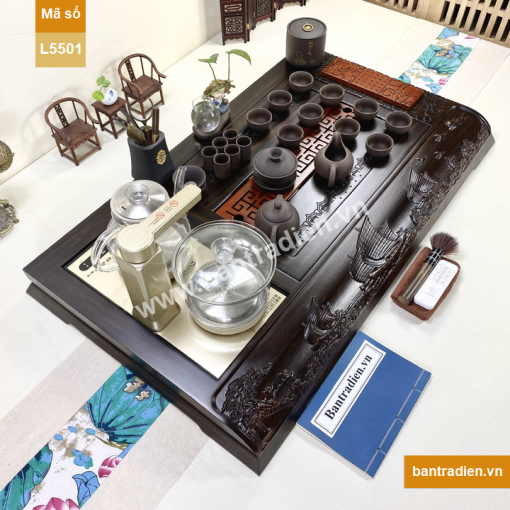 Bộ bàn trà điện cao cấp L5501, làm từ gỗ mun, chế tác thủ công và hoàn thiện tỷ mỉ.