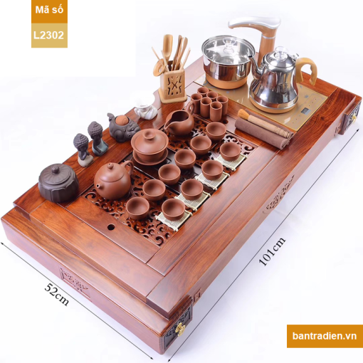– Bộ bàn trà điện cao cấp L2302, làm từ gỗ hương, chất gỗ già, được chế tác và tỷ mỉ, bề mặt được hoàn thiện cẩn thận và sơn phủ cao cấp.