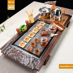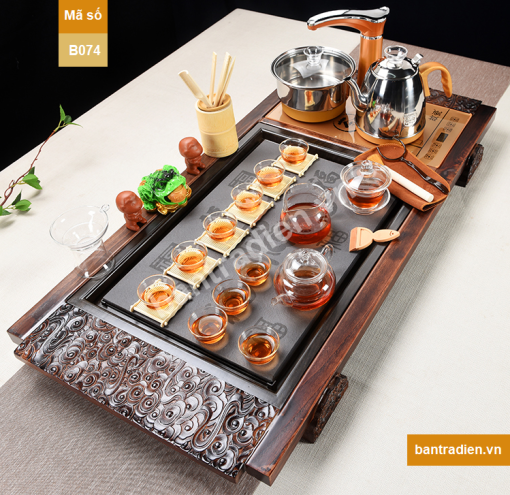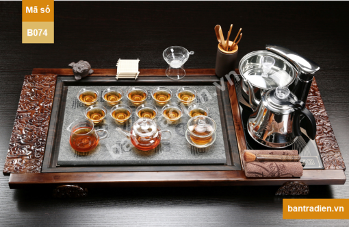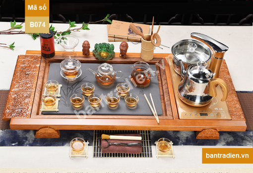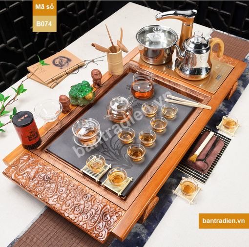 Bộ bàn trà điện thông minh B074 mang phong cách thiết kế và nhiều họa tiết truyền thống. B062 được làm hoàn toàn bằng gỗ tự nhiên 100% mặt ốp đá, kèm nhiều tiện ích: