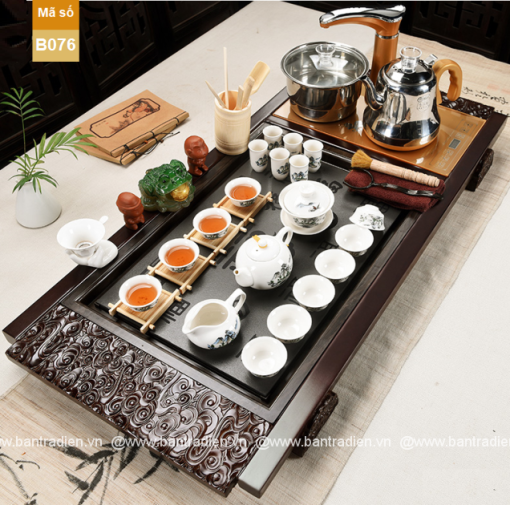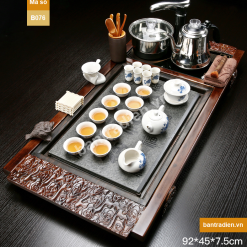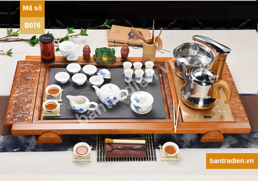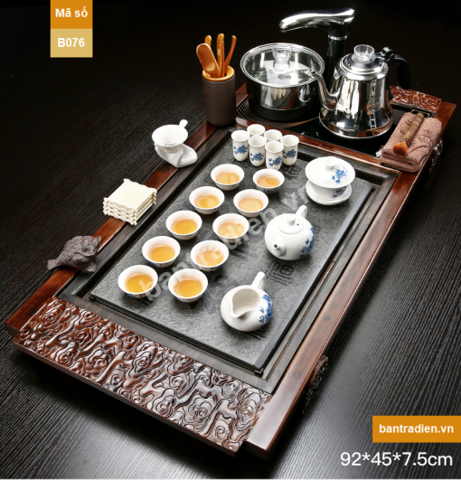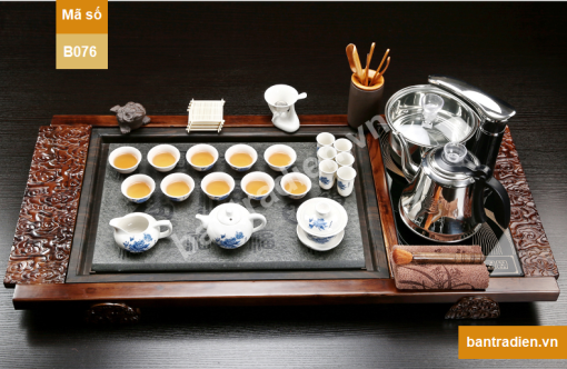 Bộ bàn trà điện thông minh B076 mang phong cách thiết kế và nhiều họa tiết truyền thống. B062 được làm hoàn toàn bằng gỗ tự nhiên 100% mặt ốp đá, kèm nhiều tiện ích: