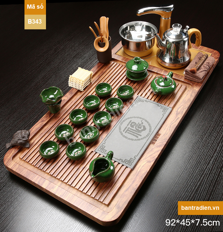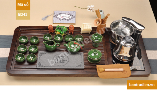 Bộ bàn trà điện thông minh B343 được làm từ gỗ tự nhiên NGUYÊN MIẾNG cao cấp đã qua xử lý chịu được nhiệt độ cao và nước, kèm theo bộ bàn là bộ ấm chén và bộ phụ kiện trà đạo. Đây sẽ là sản phẩm tuyệt vời mà bạn không nên bỏ qua.