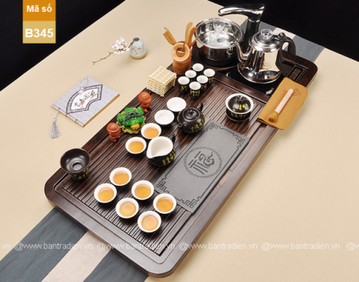 Bộ bàn trà điện thông minh B345 được làm từ gỗ tự nhiên NGUYÊN MIẾNG cao cấp đã qua xử lý chịu được nhiệt độ cao và nước, kèm theo bộ bàn là bộ ấm chén và bộ phụ kiện trà đạo. Đây sẽ là sản phẩm tuyệt vời mà bạn không nên bỏ qua.