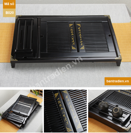 Khay trà đạo gỗ B020 được được gia cố kim loại đảm bảo tính thẩm mỹ và chất lượng sản phẩm tốt nhất cho khách hàng sử dụng.