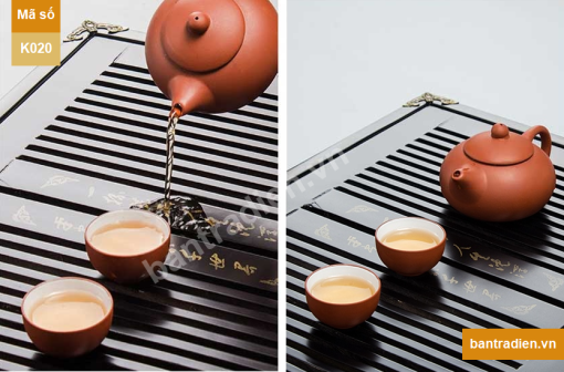Mẫu khay trà đạo K020 bằng gỗ tự nhiên đã qua xử lý. K020 được thiết kế đơn giản hiện đại xen lẫn các họa tiết trang trí truyền thống, là sản phẩm phù hợp với đa số nhu cầu khách hàng về một khay trà đạo tiện dụng, bền và tính thẩm mỹ cao. Đảm bảo có đủ mọi nhu cầu về công năng sử dụng về một sản phẩm khay trà đạo cao cấp.