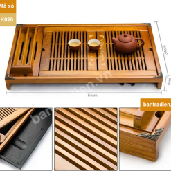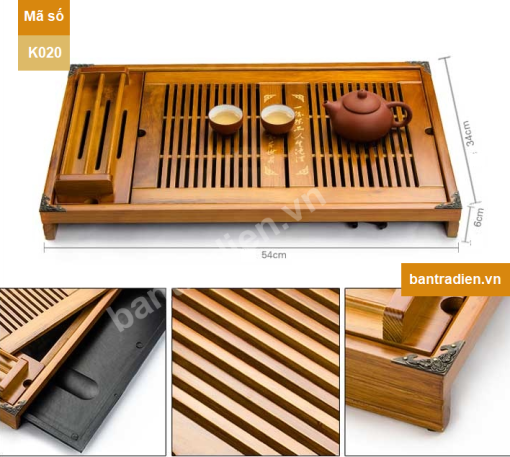 K020 có kích thước khay trà: dài 55cm, rộng 32cm và cao là 6cm.